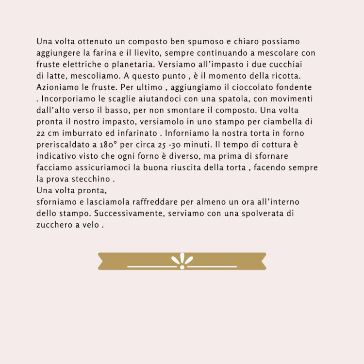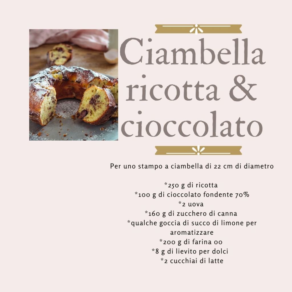 Bene. Ora che dire. Ne sono diventata dipendente. Morbida e umida allo stesso tempo. In aggiunta delle golosissime scaglie di cioccolato, di quelle che si sciolgono abbracciando in maniera delizioso l’impasto e regalandogli quel tocco unico… Considerando che questa ciambella poi è senza burro e senza olio, quindi assolutamente priva di grassi, mi sono decisa che dovevo condividerla con voi, che sono sicura che apprezzerete. Una ciambella tutta ricotta che fa esplodere in bocca tutta la sua bontà!