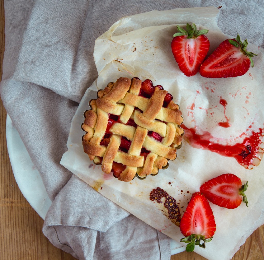 Un ripieno dolce di fragole. Un ripieno morbido in tutta al sua naturalità. Pezzetti di fragole che si sciolgono in un morbido abbraccio con il miele. Abbraccio sugellato e protetto da un croccante guscio di pasta frolla burroso e fragrante.
