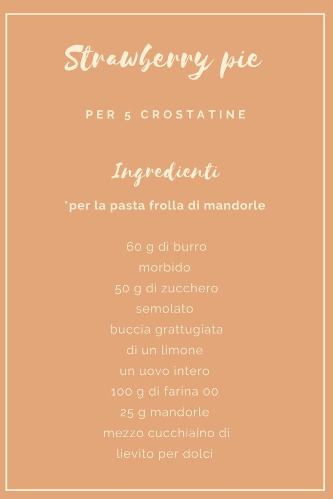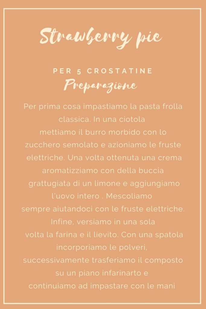 (Con questa ricetta vengono 5 crostatine piccole. Per una pie unica e gramnde di almeno 26 cm, raddoppiare tutte le dosi).