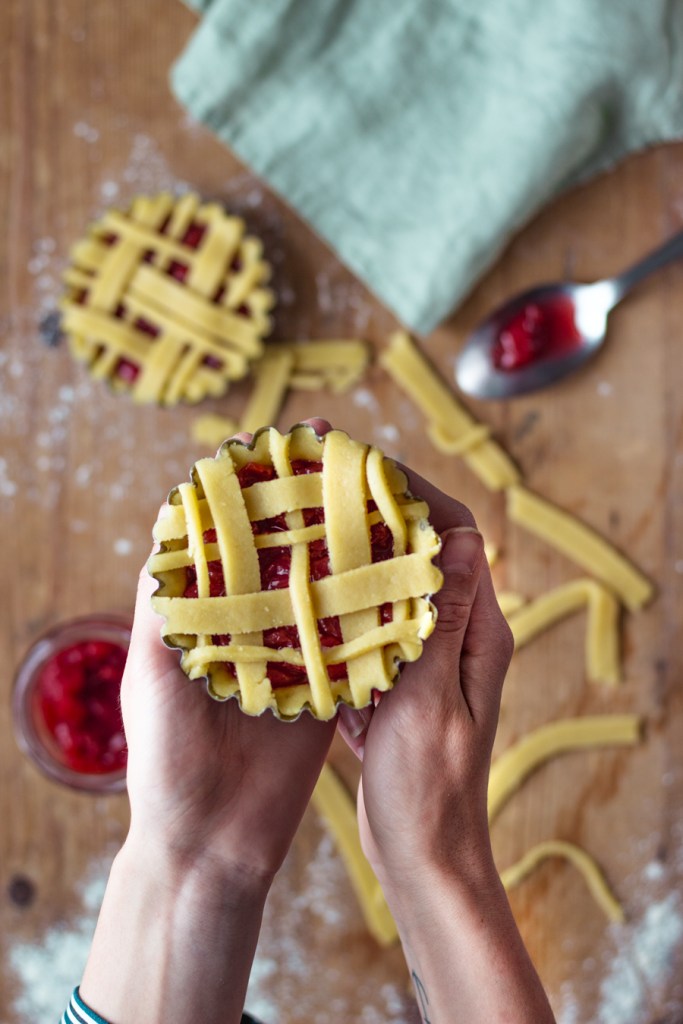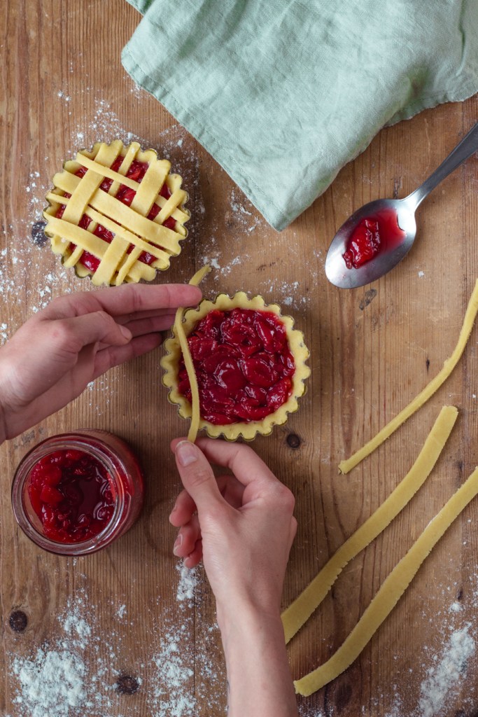 Perdermi tra intrecci golosi e profumati di limone delle mie crostatine. Un guscio friabile e burroso che racchiude il dolce succo delle ciligie; in una trama stretta e fitta di strisce che ne preservano la bontà.
