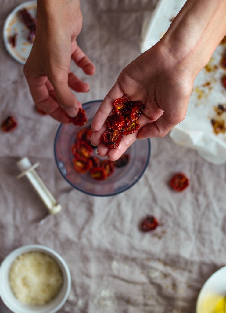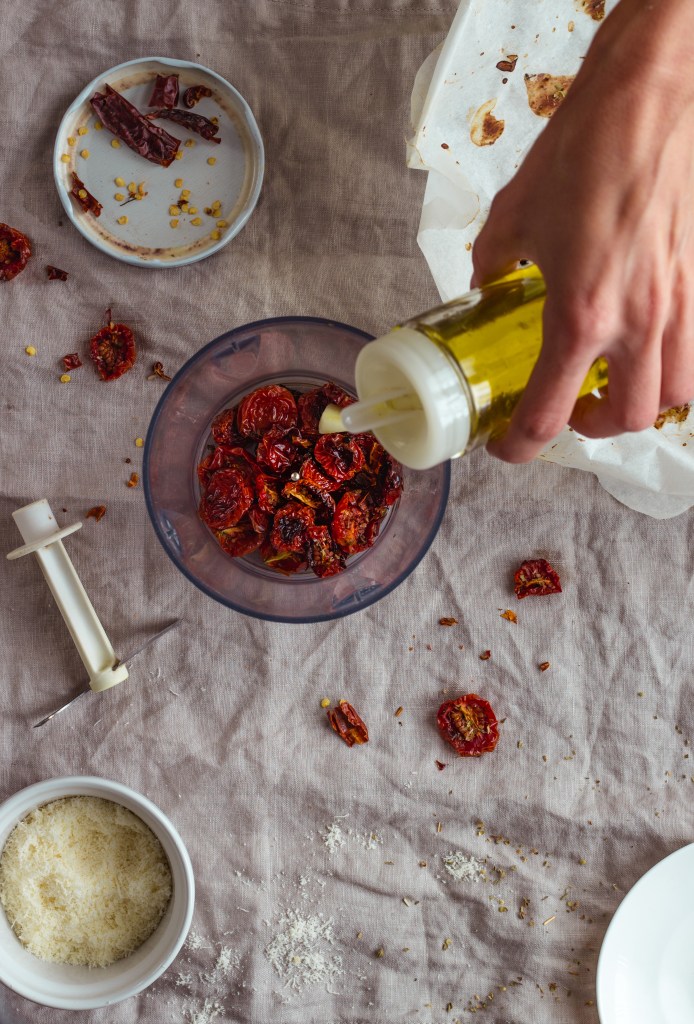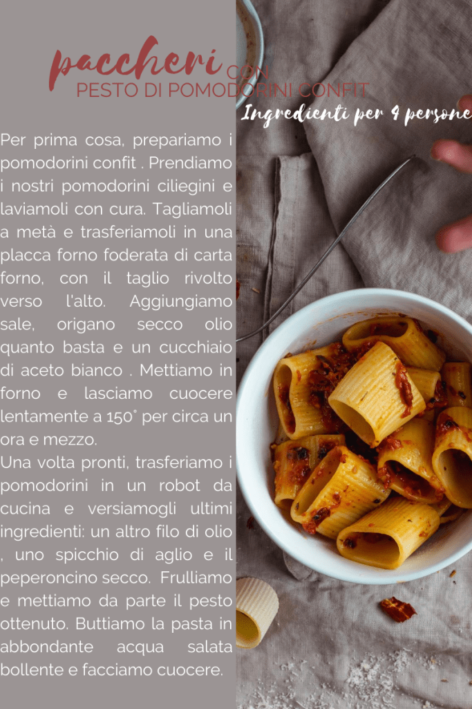 Questo pesto di pomodorini confit si presta benissimo per conservare l’estate in vasetto per poi tirarla fuori all’occorrenza, quando si ha voglia di profumi e aromi che ricordano giorni felici e di pensieri leggeri.